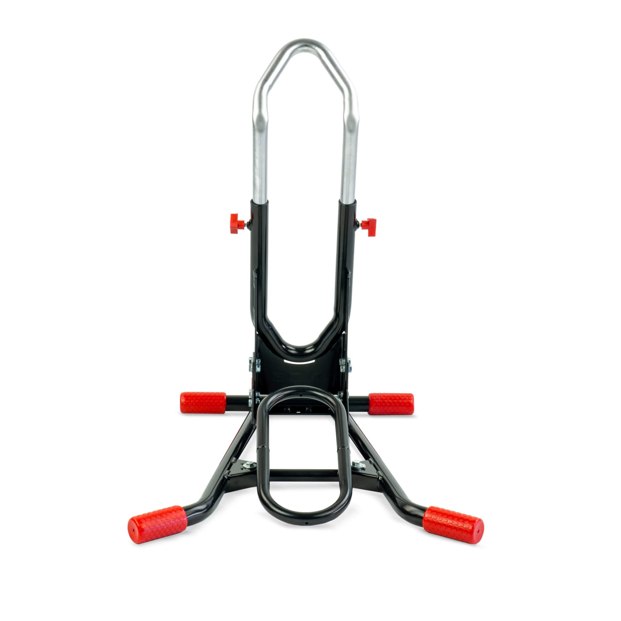 Grâce à sa conception intelligente, le Cross Flex peut être utilisé dans de multiples situations : pour garer votre moto dans le garage, lors d’événements ou de courses, pendant l’entretien et le nettoyage, ou pour maintenir la moto en position verticale en toute sécurité pendant le transport*. La roue avant est solidement soutenue, ce qui empêche la moto de basculer tout en permettant un placement rapide et facile. Que vous travailliez sur votre moto, que vous la laviez, que vous la rangiez ou que vous la chargiez pour le transport, le SteadyStand Cross Flex offre une solution fiable et flexible pour tous les pilotes de motocross et d’enduro.